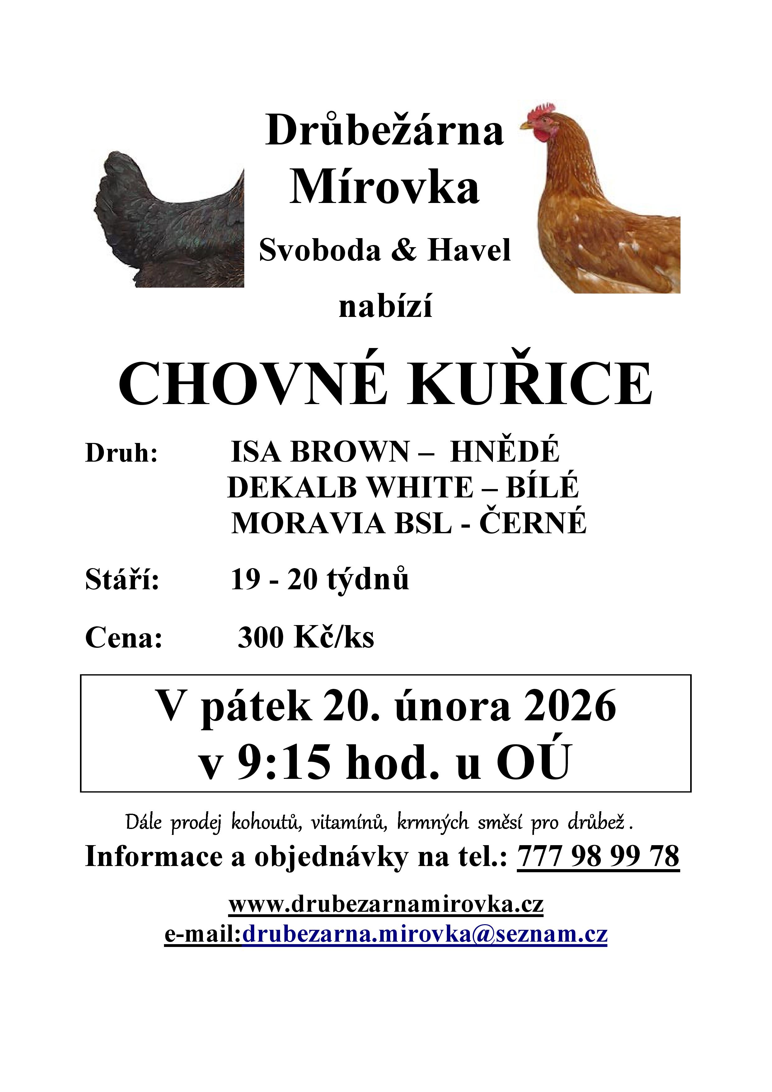 Nebezpečný odpadTermín svozu nebezpečného odpadu je určen na 28.09.2025 v 8:30 h K rampě krámu je možné dávat od 22.9.2025 tak, aby nebylo omezení zásobování obchodu V režimu zpětného odběru převezmeme také: - elektrozařízení – lednice, mrazničky, televizory, monitory, sekačky (NE BENZÍNOVÉ), mikrovlnné trouby a zářivky bez obalu pouze zářivkové trubice. Zařízení musí být kompletní, tj. nesmí chybět žádné podstatné součásti a nesmí být demontované - olej motorový a převodový bez příměsí a nečistot barvy, laky, ředidla – pouze dobře uzavřené - drobné baterie a monočlánky - lepenku, azbest, asfalt a pneumatiky nebereme - plastové nádoby od primalexů a primalex barvy nebereme (toto není nebezpečný odpad)