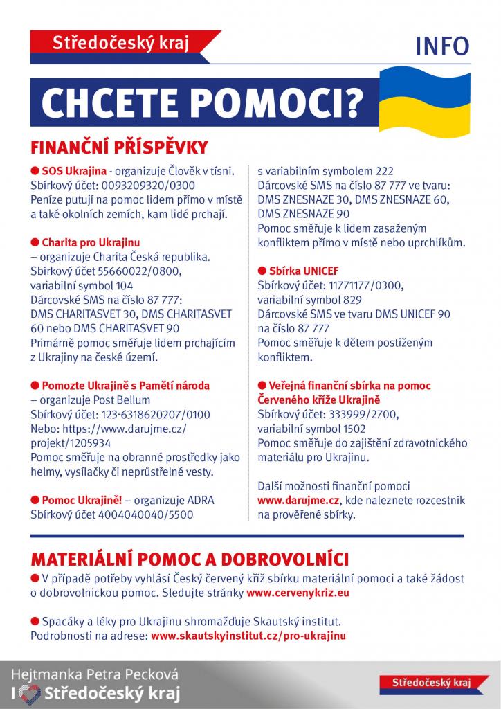 Sbírka pro UkrajinuMS ČČK společně s obcí Chudíř pořádá sbírku pro Ukrajinu. Podle zjištěných informací je nejvíce žádané následující: - dětské zimní oblečení - karimatky - svítilny a baterky